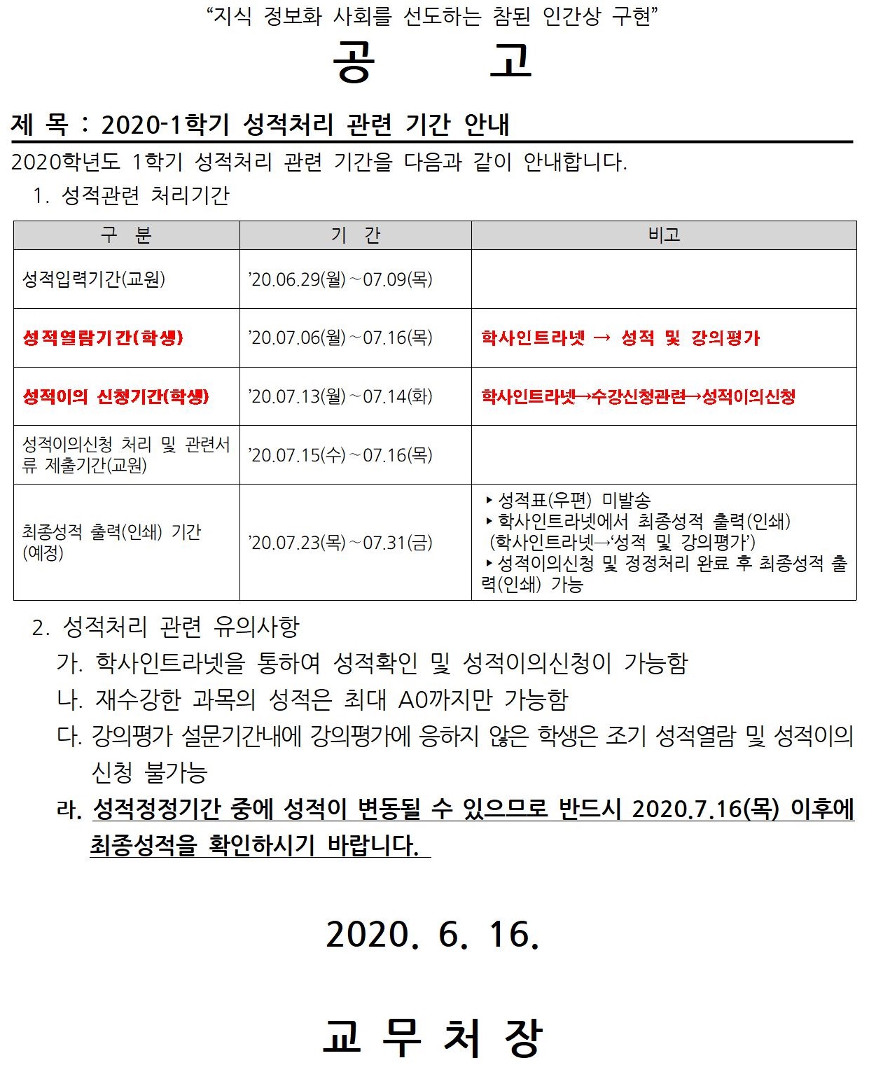 2020-1학기 성적처리 관련(학생)