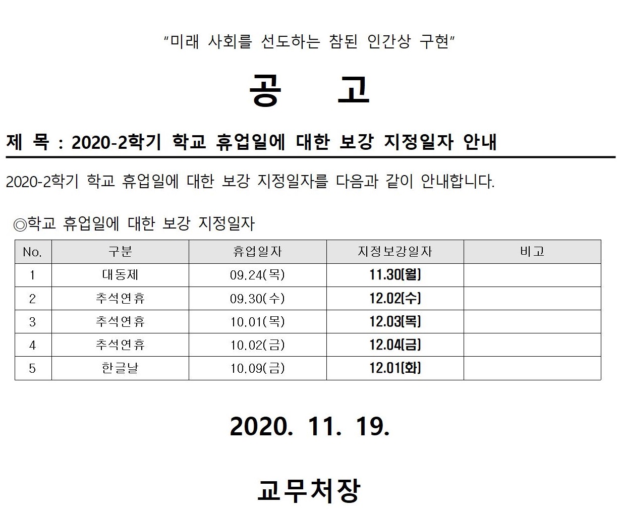 2020-2학기 지정보강일자 안내001