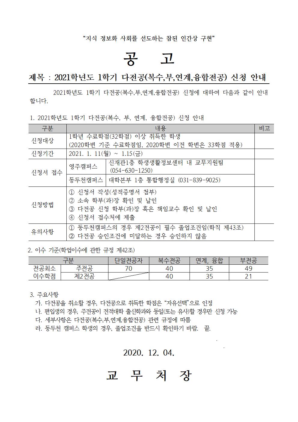 2021학년도 1학기 다전공 신청 공고문001
