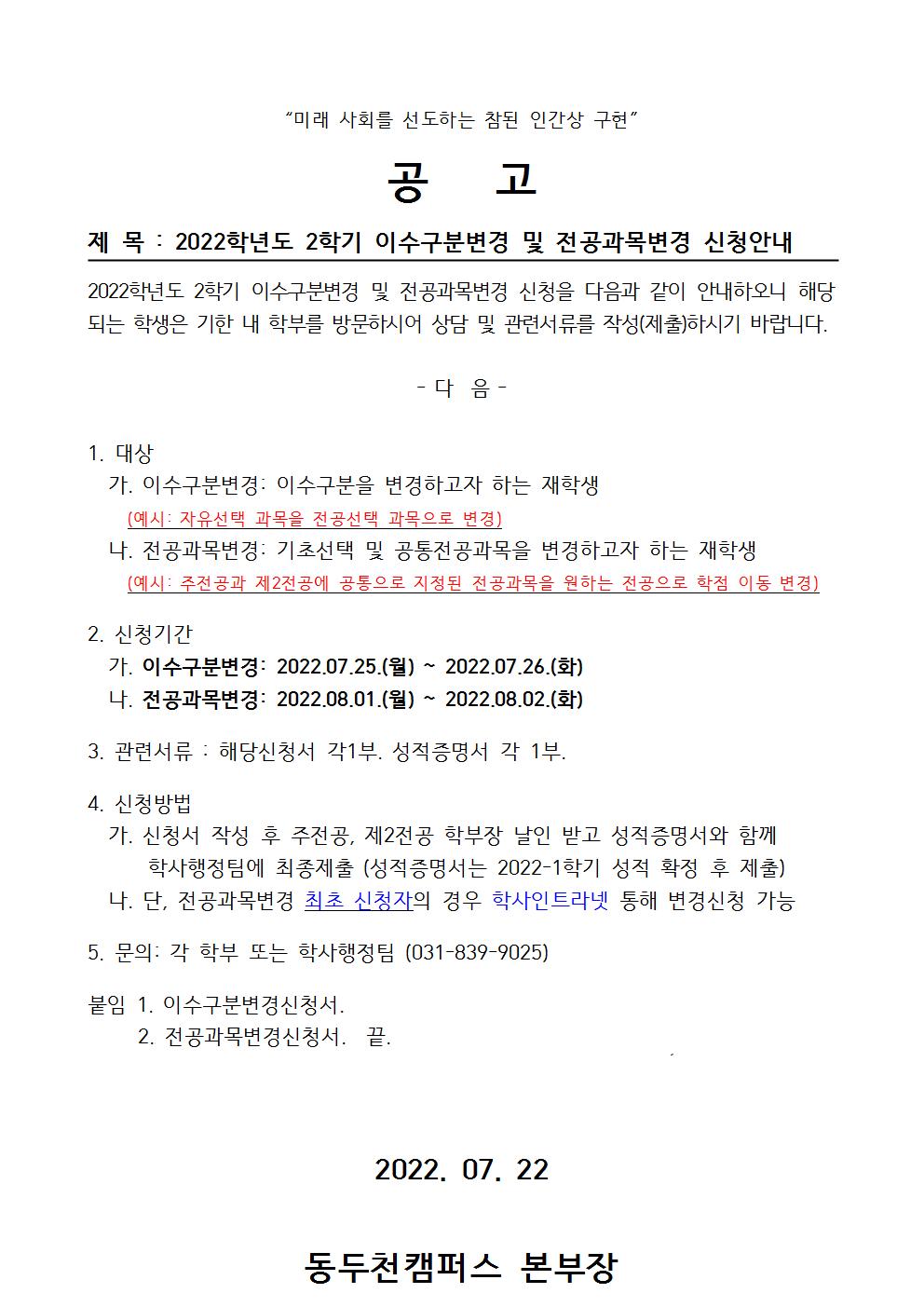 2022학년도 2학기 이수구분변경 및 전공과목변경001