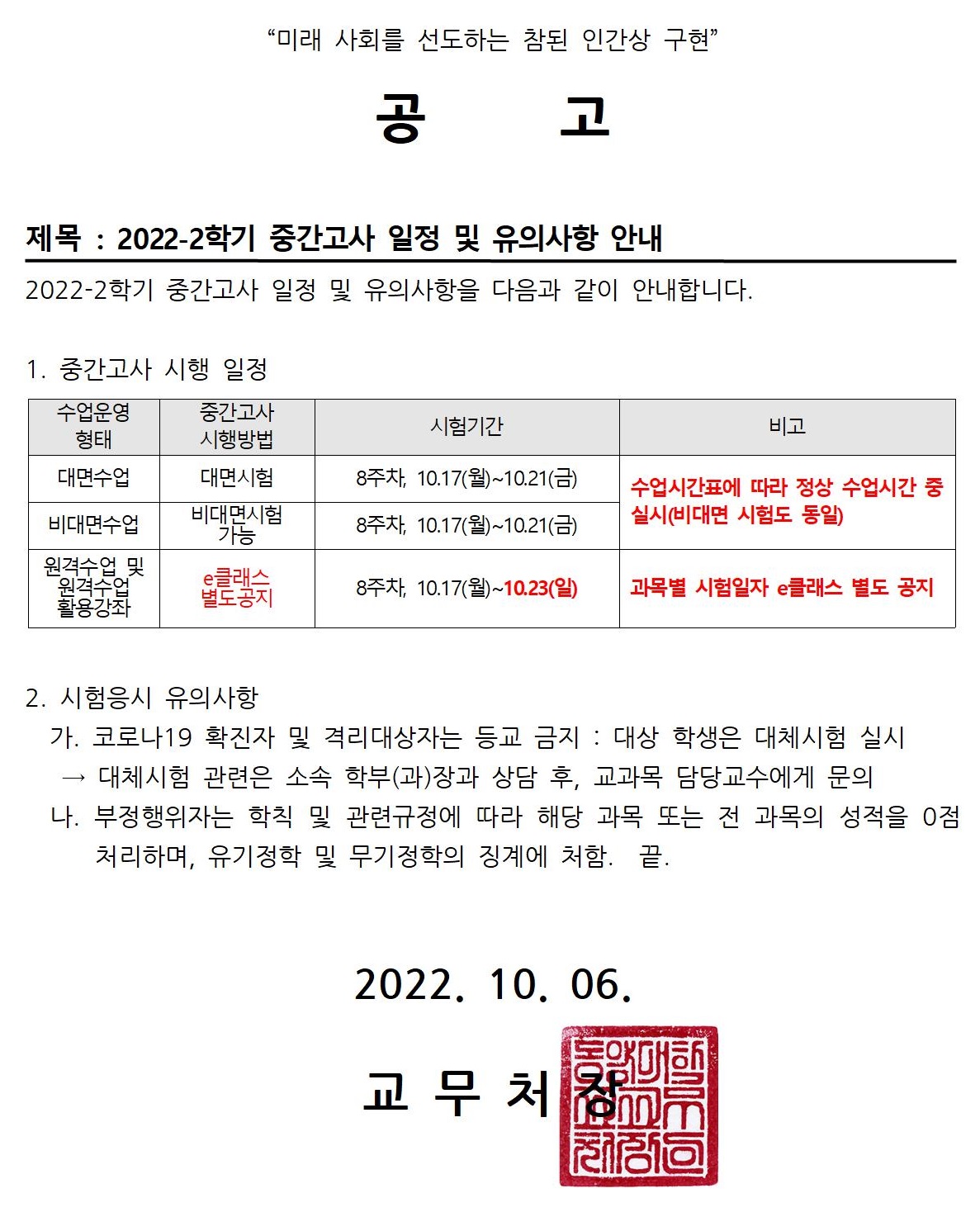 2022-2학기 중간고사 일정 안내001