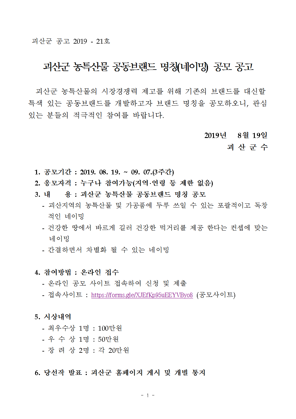괴산 농특산물 공동브랜드 네이밍 공모001
