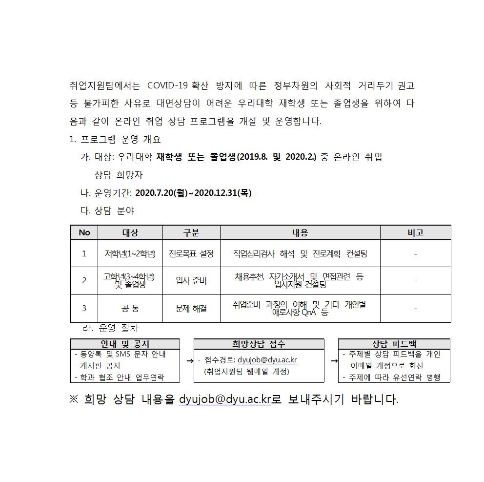 온라인 취업 상담 프로그램 개설 안내 (취업지원팀)
