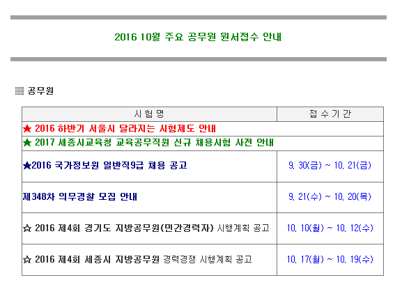 10월 공무원 원서접수 안내