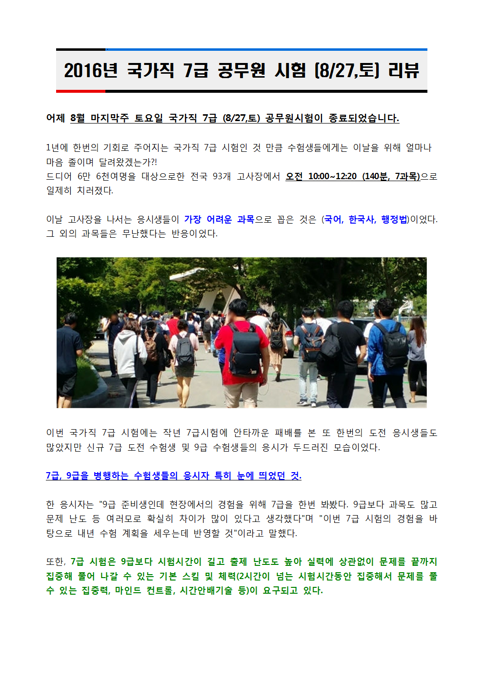 2016년 국가직 7급 공무원 시험 (8월 27일,토) 리뷰001
