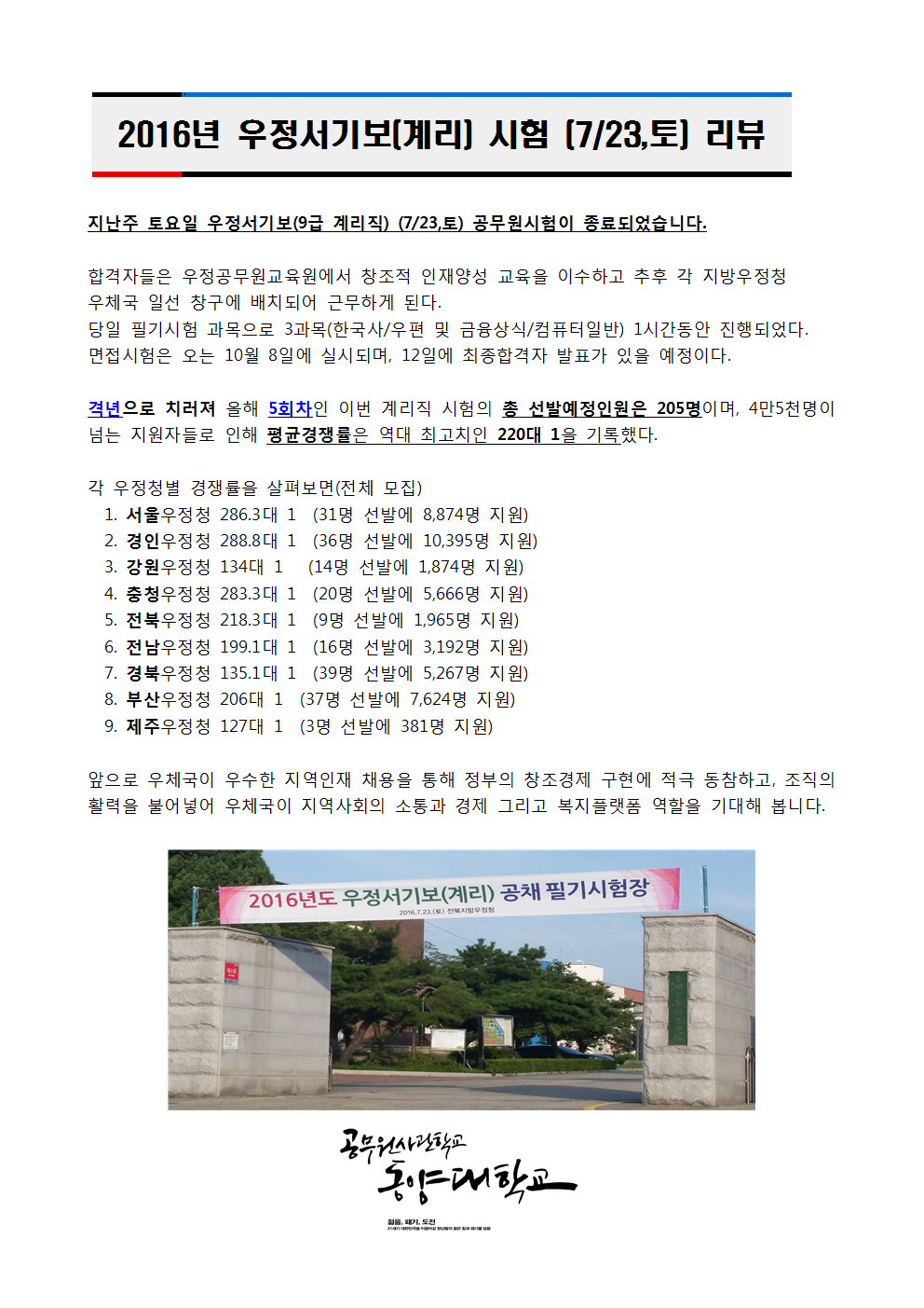 2016년 우정서기보(계리) 시험 (7월 23일,토) 리뷰
