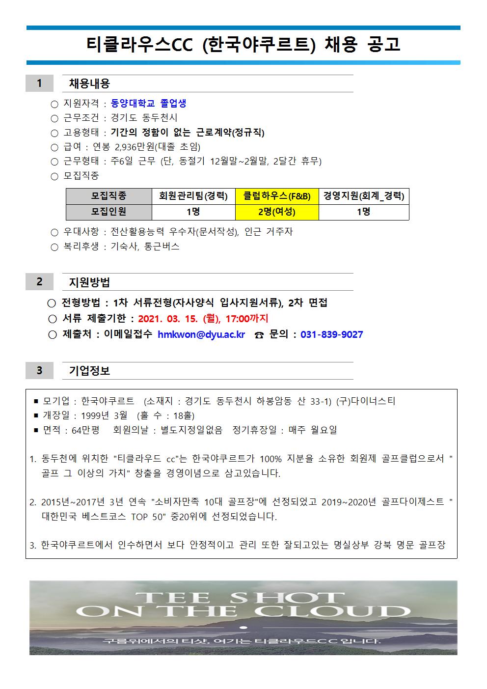 2021_티클라우스CC (한국야쿠르트) 채용 공고001