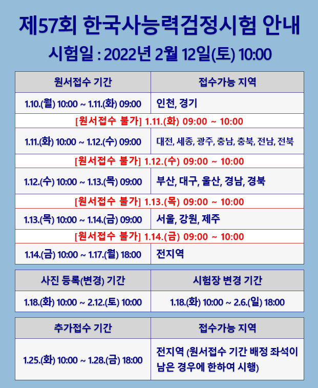 2022년 한국사능력검정 (57회 접수기간) 안내