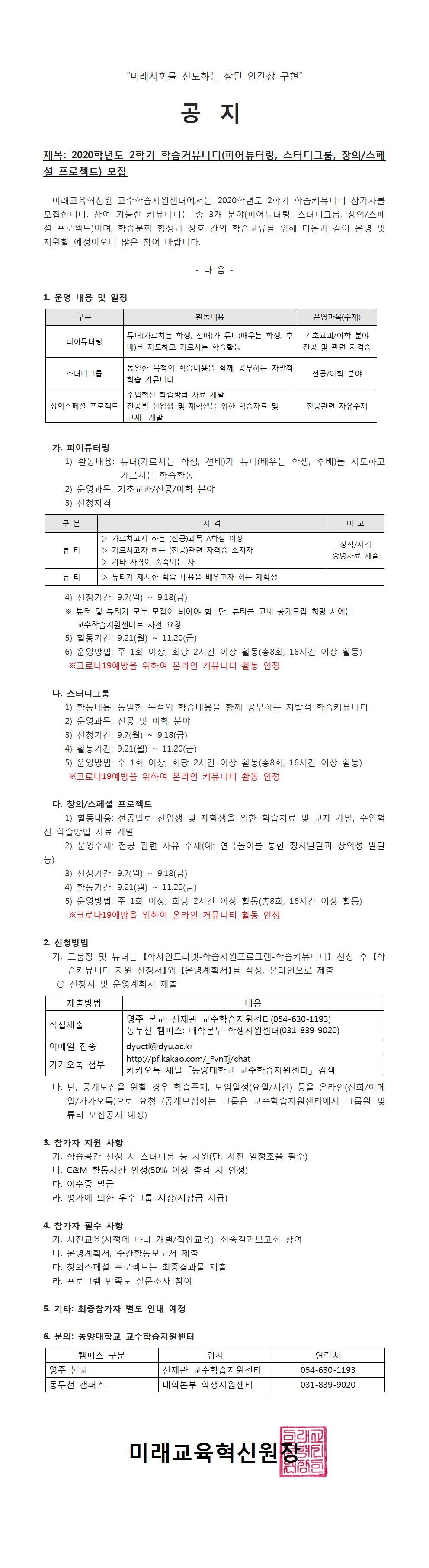 [붙임1]2020-2학기 학습커뮤니티 모집 공지문