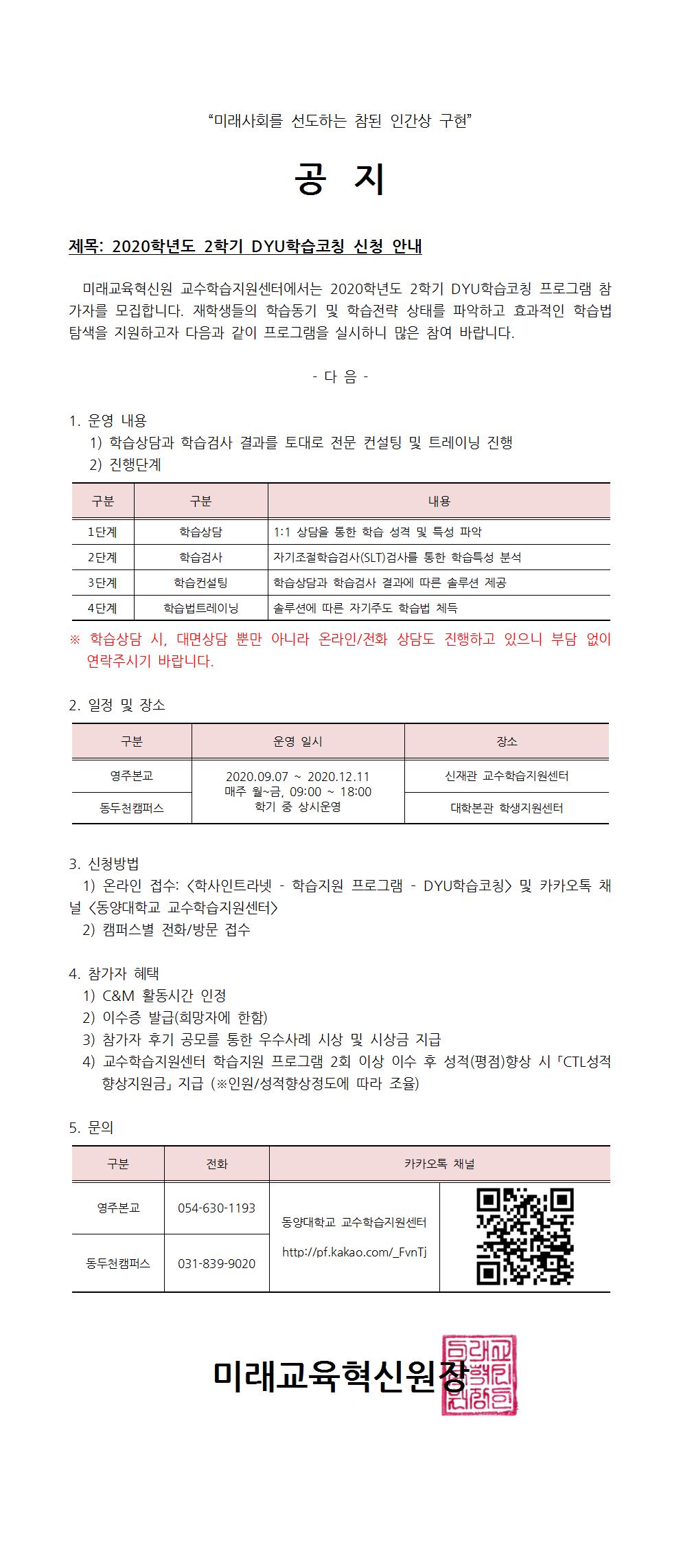(공지문) 2020학년도 2학기 DYU학습코칭