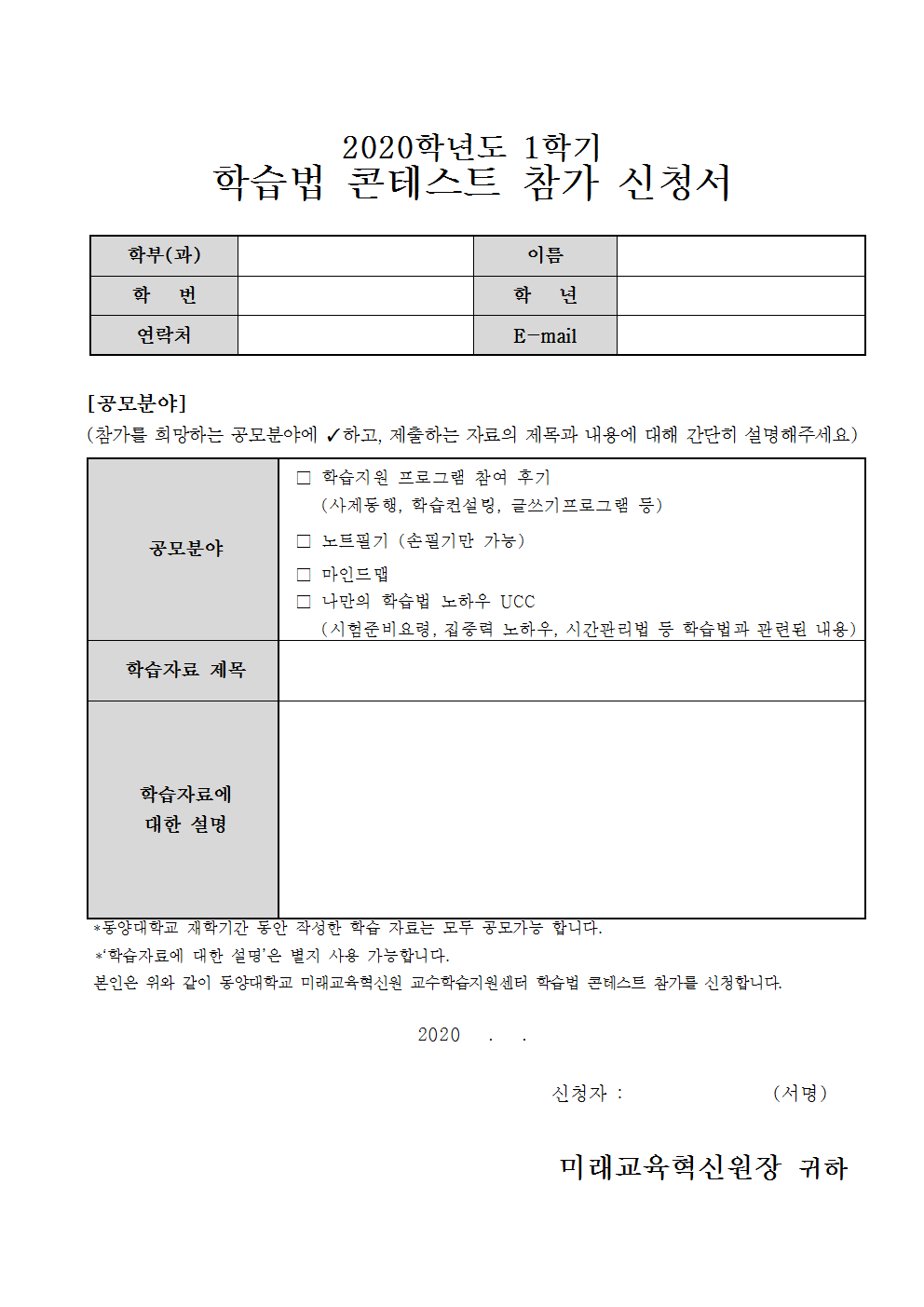 붙임) 학습법 콘테스트 참여신청서(양식)001