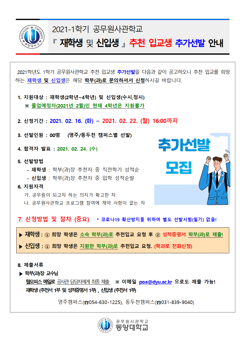 붙임1) 2021-1학기 공무원사관학교 추천 입교생 추가 모집안내 (재학생,복학생)001