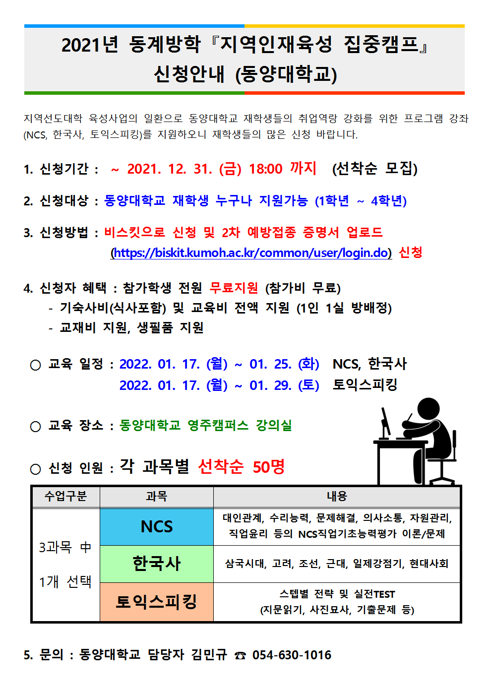 (안내문) 2021 동계방학 『지역인재육성 집중캠프』 신청안내 (NCS, 한국사, 토익스피킹)001