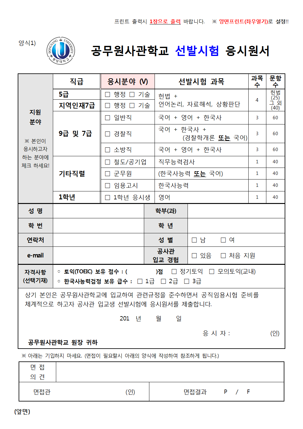 (응시원서) 공무원사관학교 재학생 입교 선발시험 (2020학년도)001