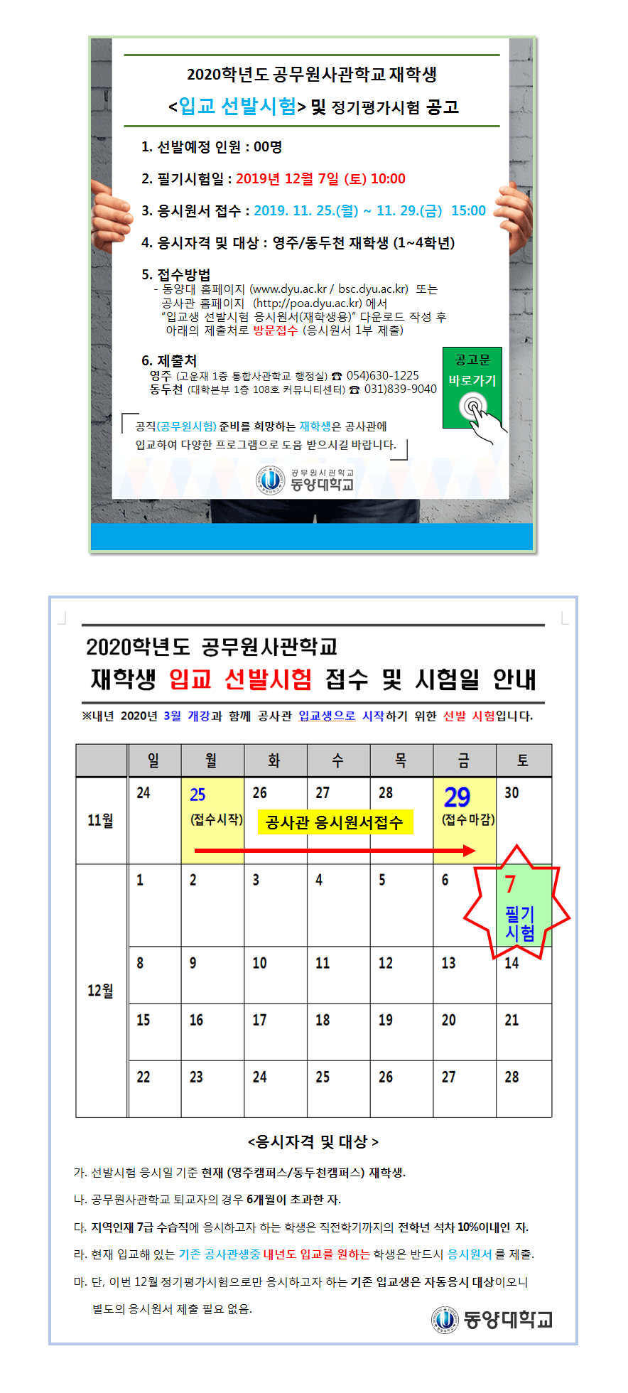 (최종 공지문) 2020 재학생 입교 선발시험