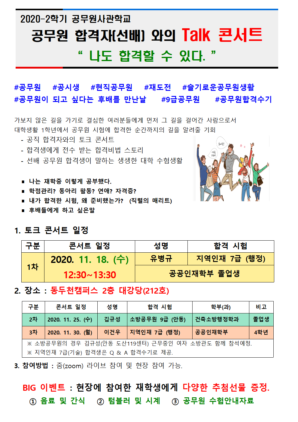 (홍보전단) 2020-2학기 공무원사관학교 공무원 합격자(선배) 토크 콘서트 1차 안내문001