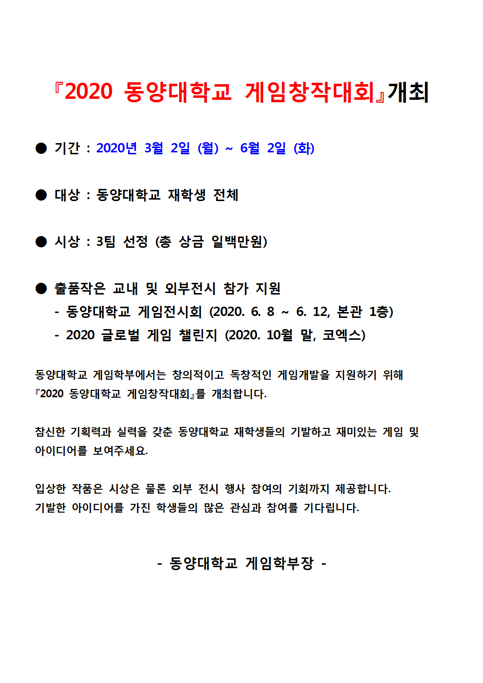 ‘2020 동양대학교 게임창작대회’ 개최001