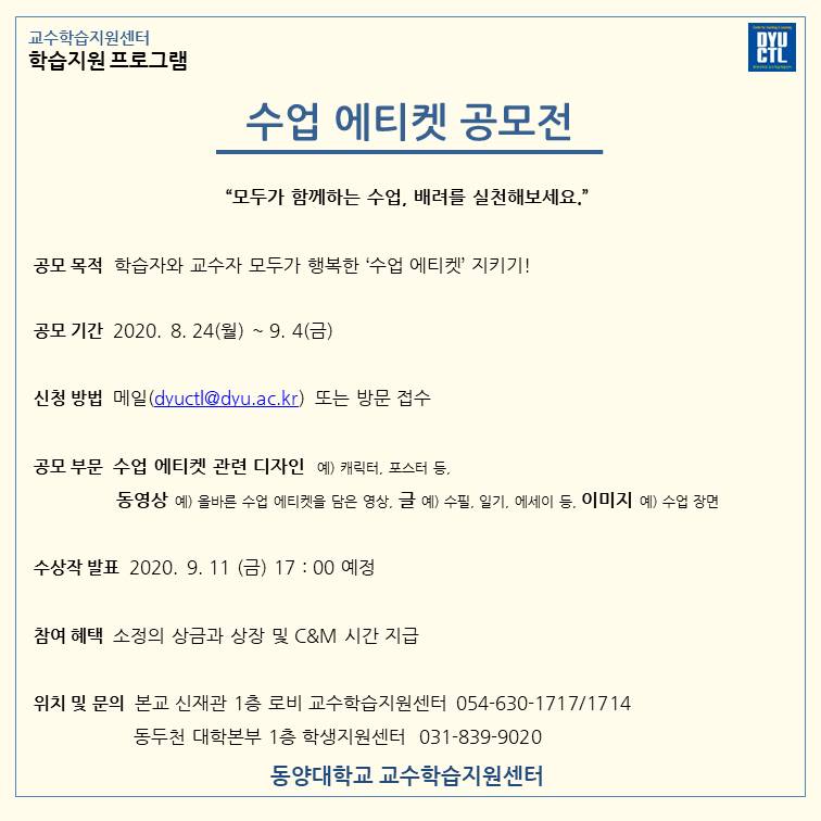 2020-하계 수업 에티켓 공모전 (교수학습지원센터) 0824(월)~0904(금)