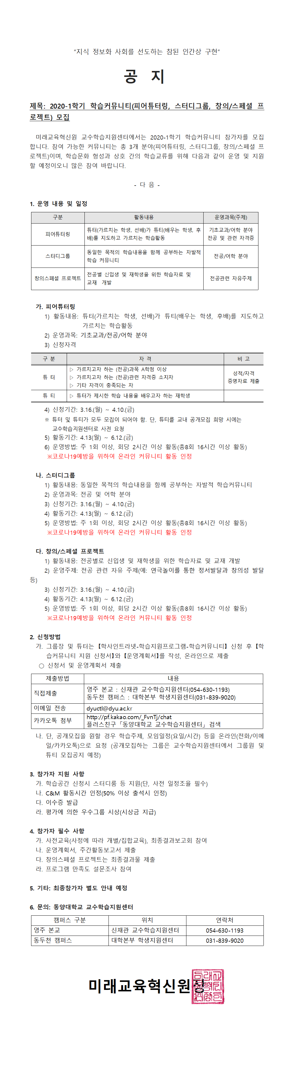 2020-1학기 학습커뮤니티(피어튜터링, 스터디그룹, 창의스페셜)