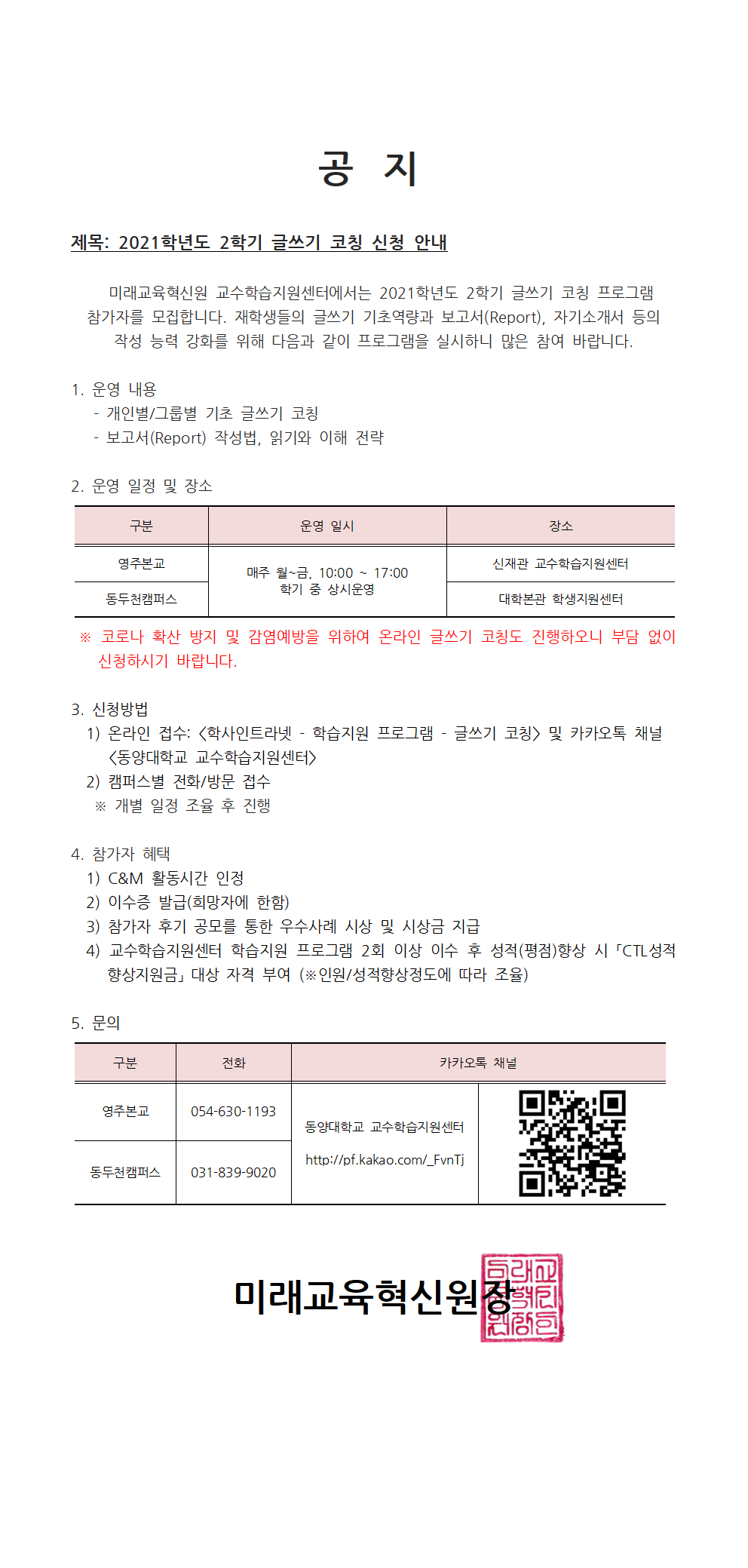 2021학년도 2학기 글쓰기 코칭 신청 안내