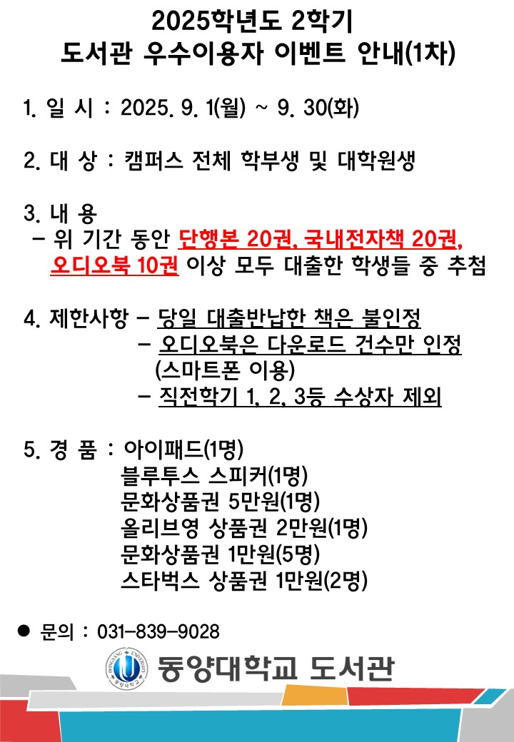 연락처 : 031-839-9114   위치 : 우) 11307 경기도 동두천시 평화로 2741 동양대학교 동두천캠퍼스