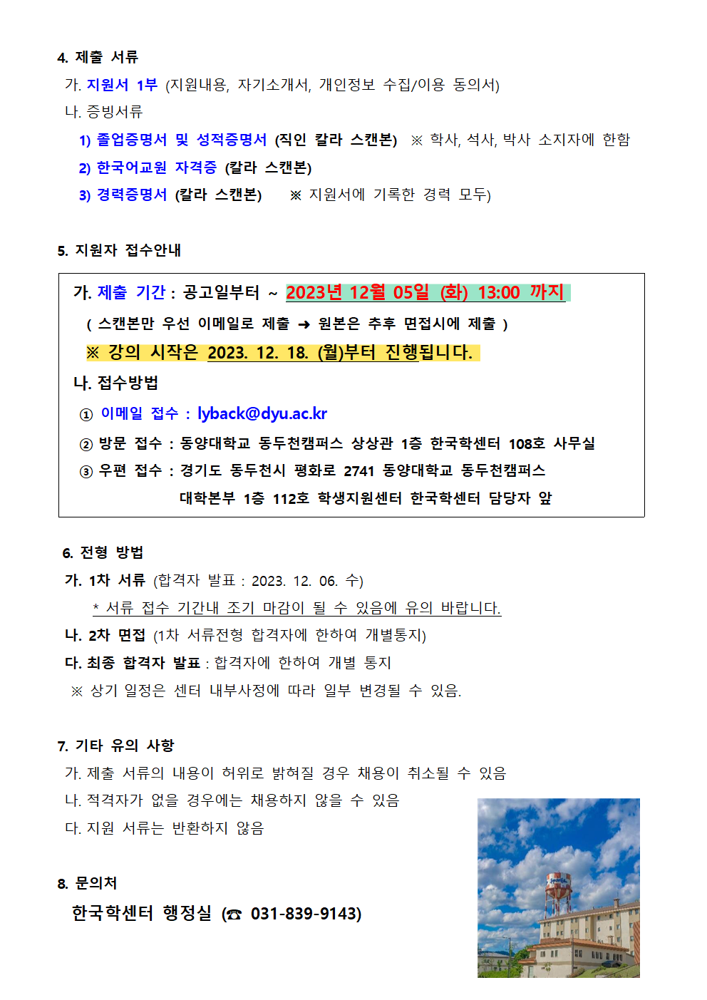(공고문) 1. 2023년 동양대학교 겨울학기 한국어 강사 모집공고 (동두천캠퍼스 한국학센터)002