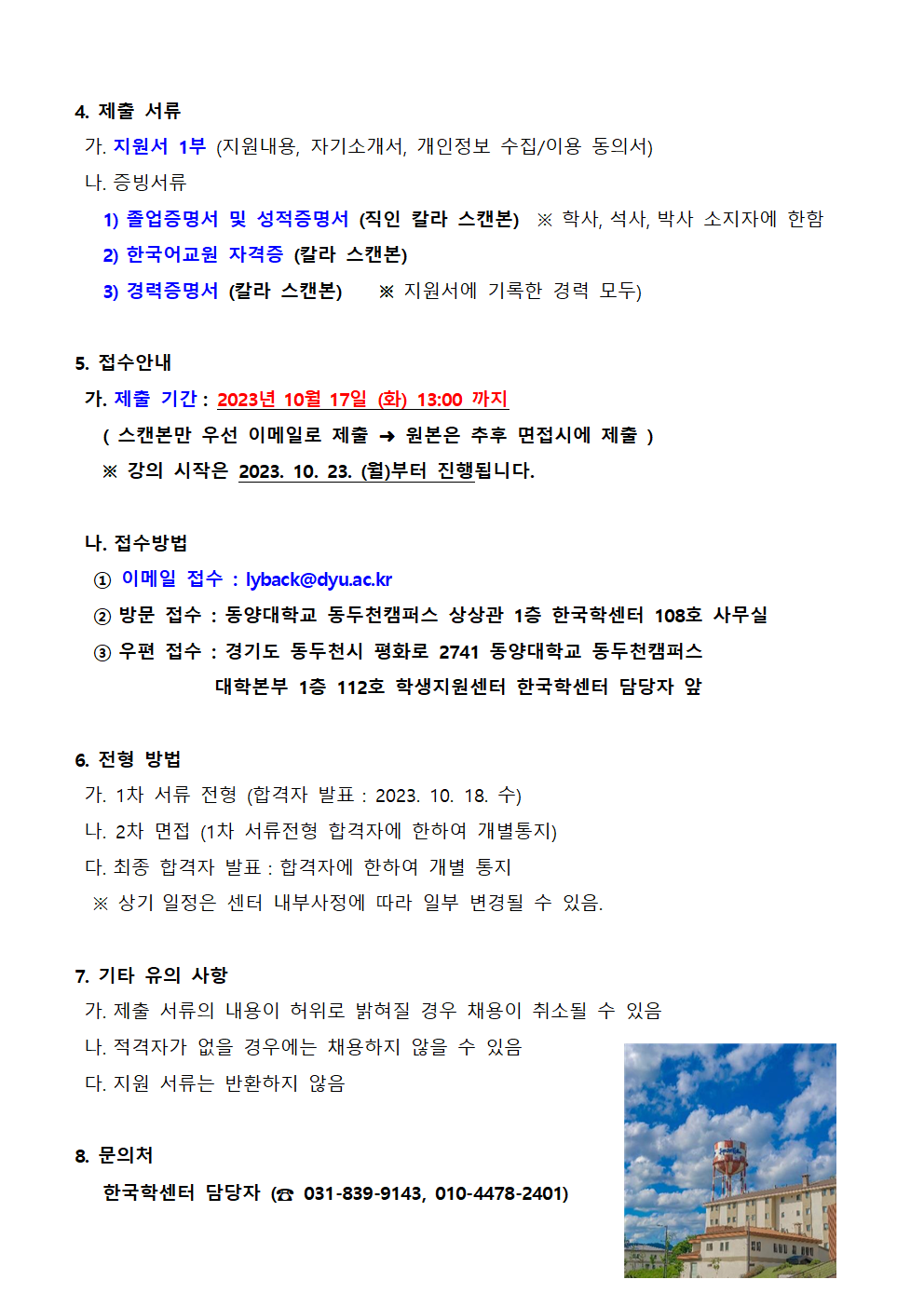 (공고문) 1. 2023년 동양대학교 한국어 강사 모집공고 (동두천캠퍼스 한국학센터) 231014002