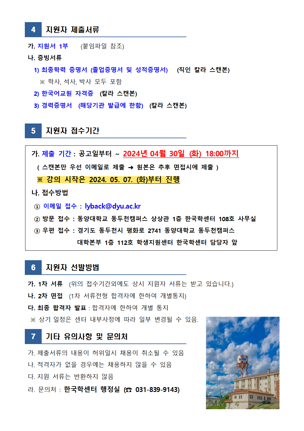 (공고문) 1. 2024년 동양대학교 5월 개강반 한국어 강사 모집공고 (동두천캠퍼스 한국학센터)002