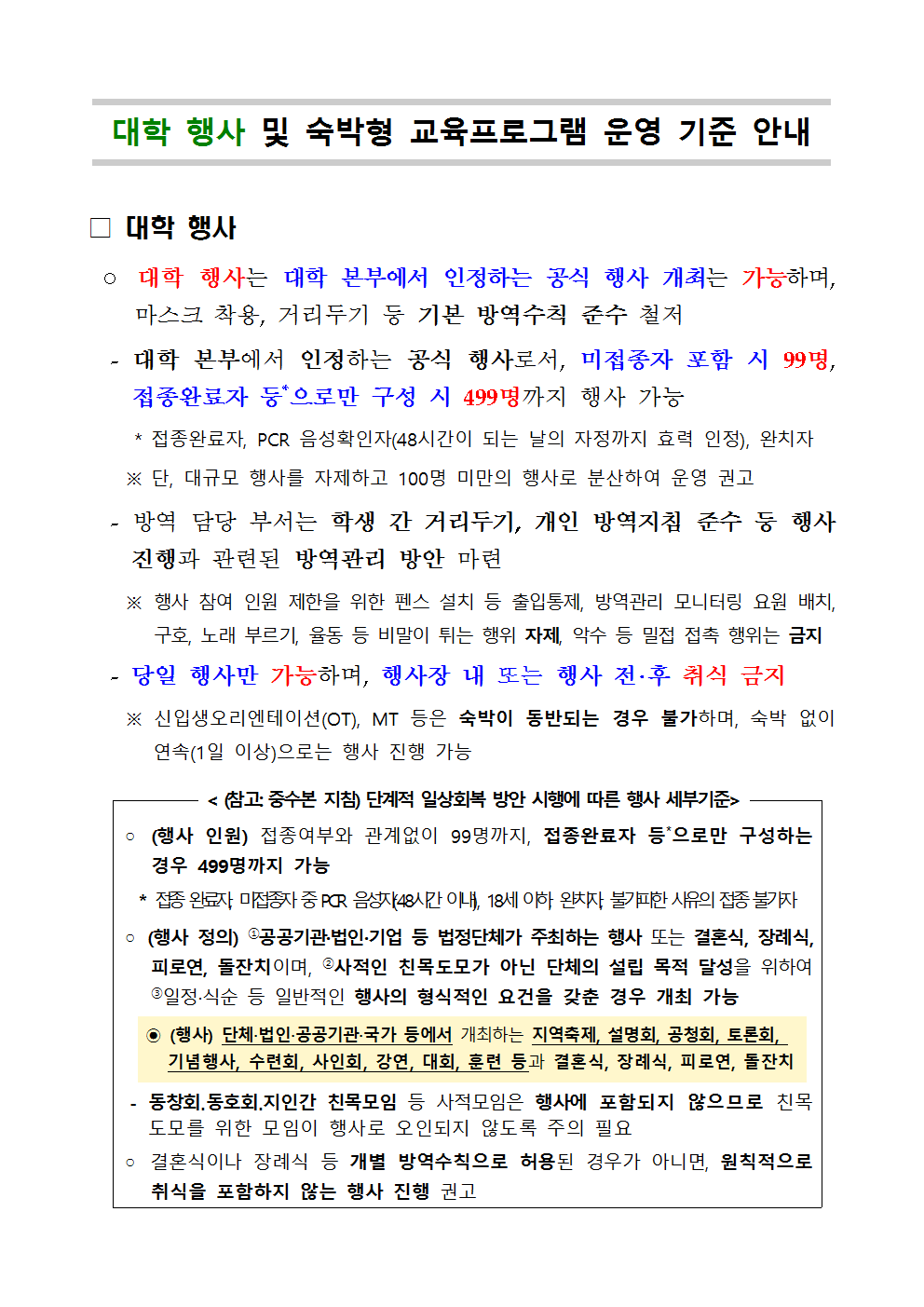 대학 행사 및 숙박형 교육프로그램 운영 기준 안내001