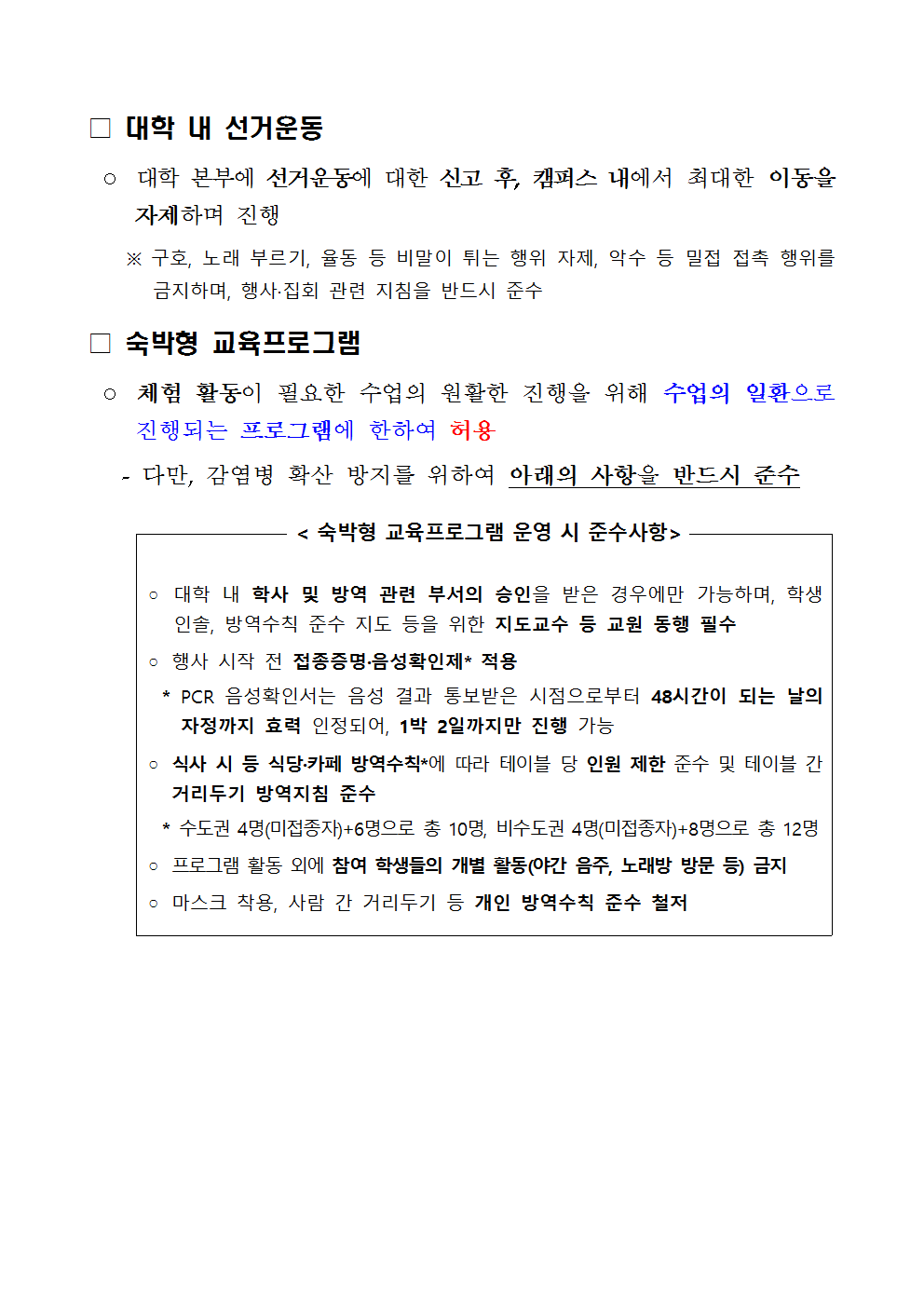 대학 행사 및 숙박형 교육프로그램 운영 기준 안내002
