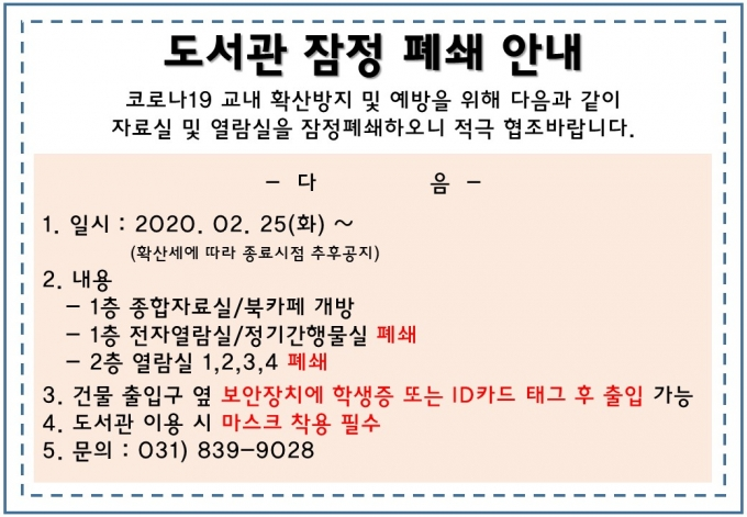 도서관 잠점 폐쇄 안내(본문내용)