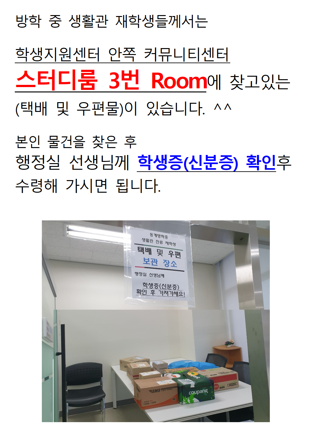 동계방학중 생활관 택배 보관장소 및 시간안내003