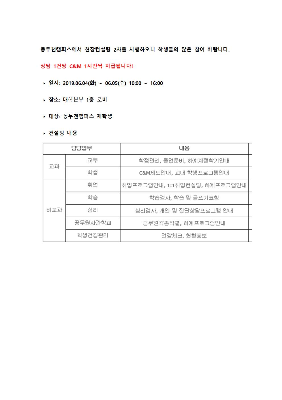 동두천캠퍼스에서 현장컨설팅 2차를 시행하오니 학생들의 많은 참여 바랍니다001