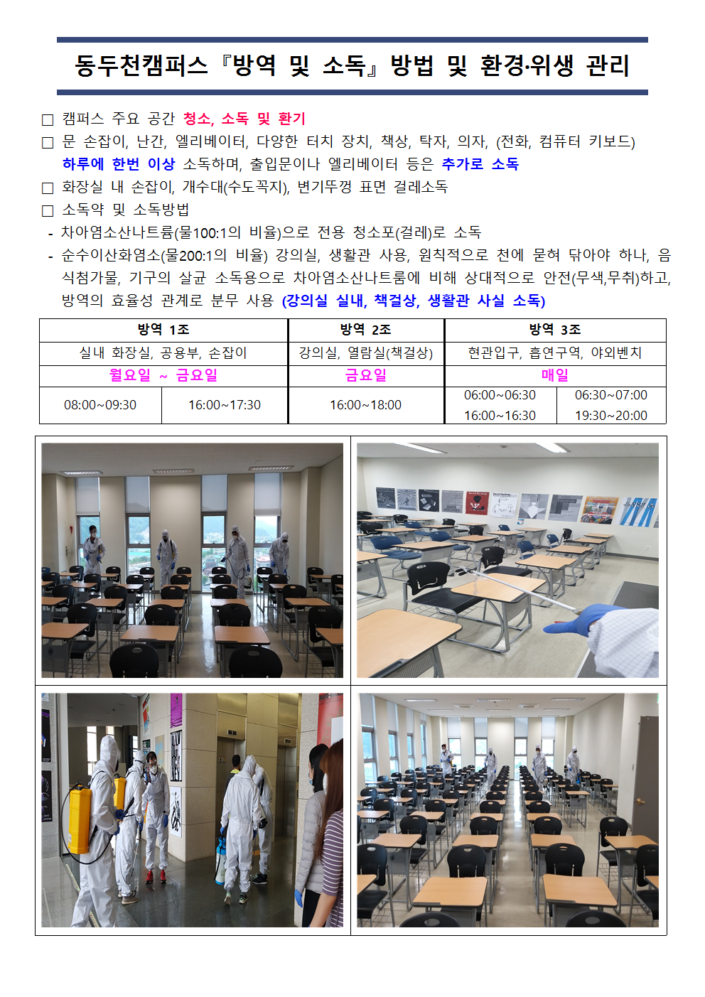 동두천캠퍼스 『방역 및 소독』 방법 및 환경·위생 관리