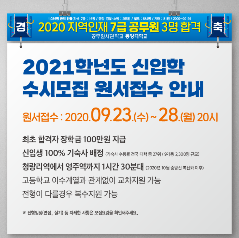 (메인 팝업창) 동양대 2021 신입학 수시모집 원서접수 안내 (2020 0923)