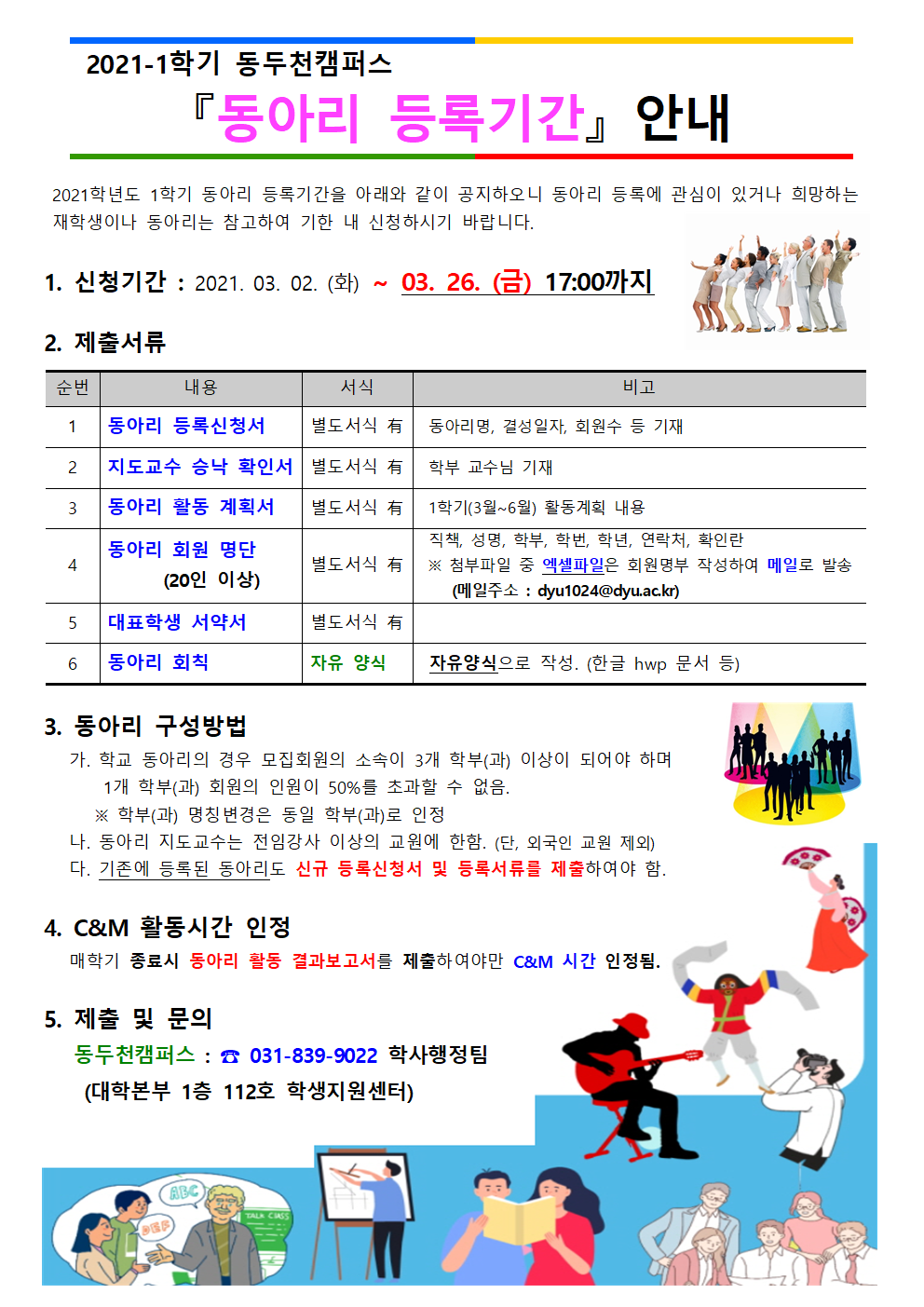 붙임) (안내문) 2021-1학기 동두천캠퍼스 동아리 등록안내