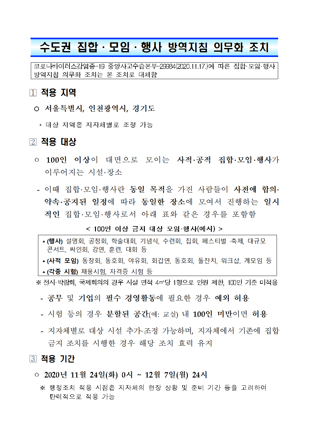 (붙임5) 수도권 모임행사 방역지침 의무화 조치001