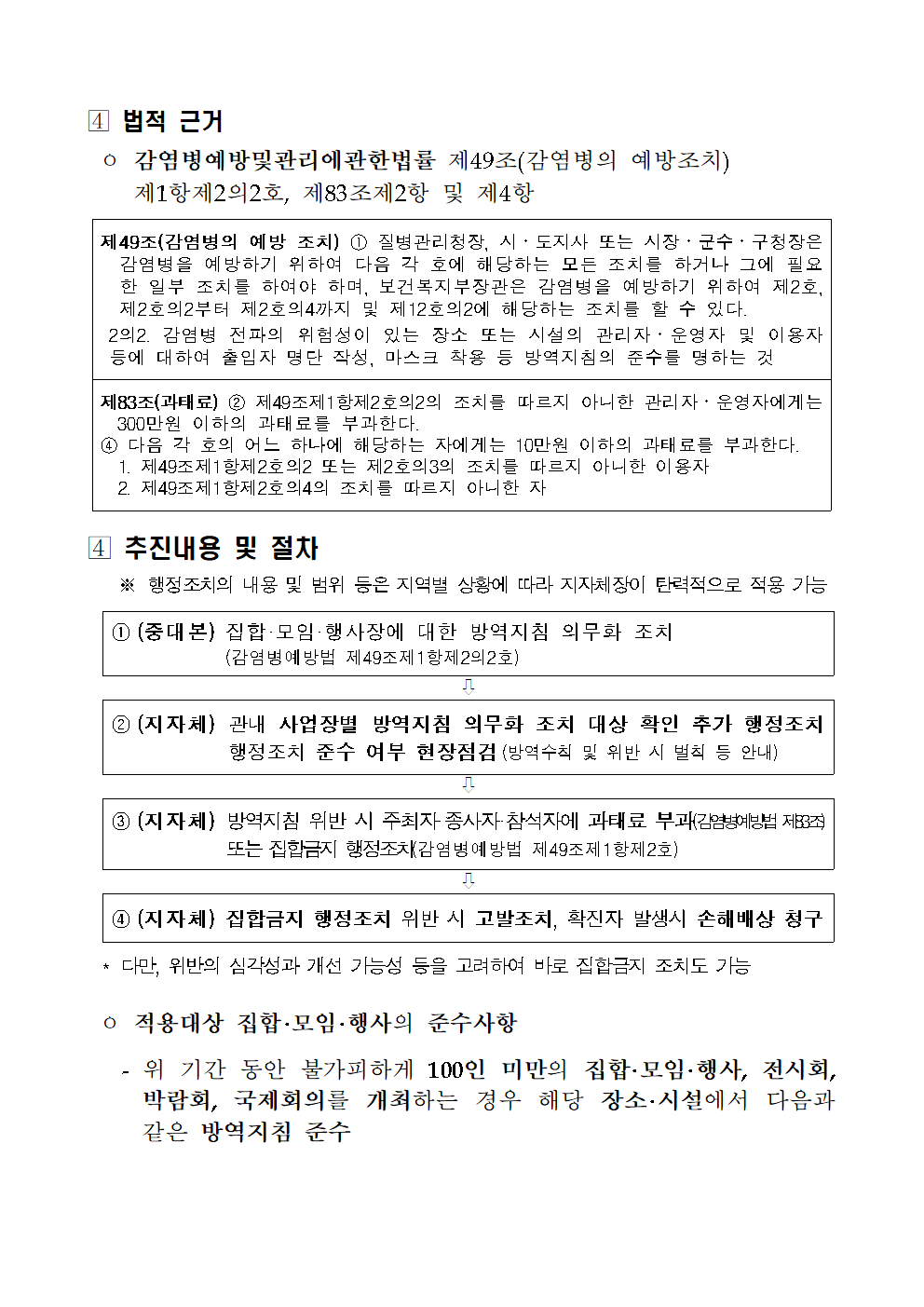 (붙임5) 수도권 모임행사 방역지침 의무화 조치002
