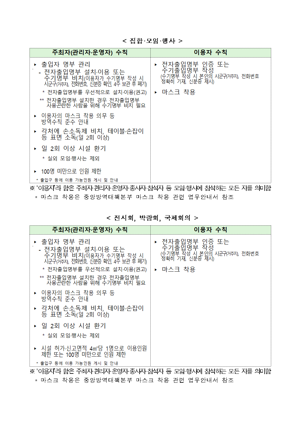 (붙임5) 수도권 모임행사 방역지침 의무화 조치003