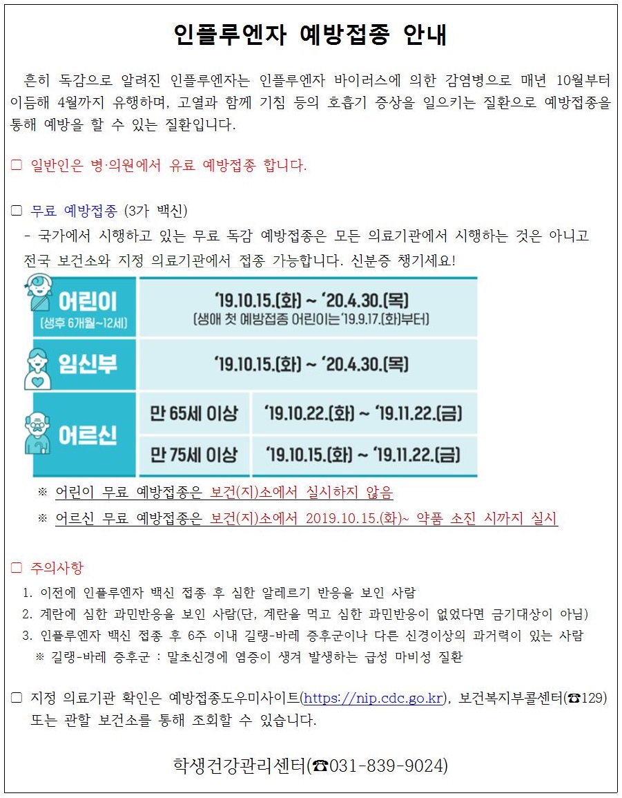 인플루엔자 예방접종 안내