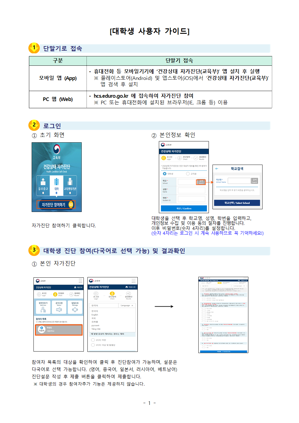 자가진단 앱 설명서 (학생용) 교육부001