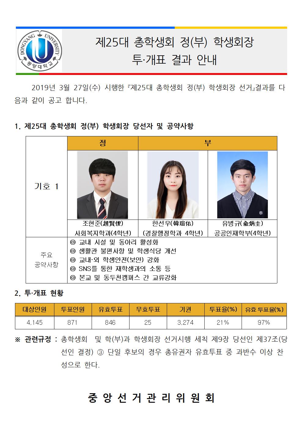 제25대 총학생회 정(부) 학생회장 투 개표 결과 안내
