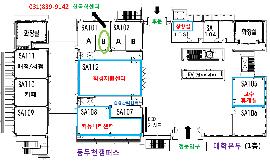 한국학센터 위치안내 _ 동두천캠퍼스 대학본부 1층 101B _