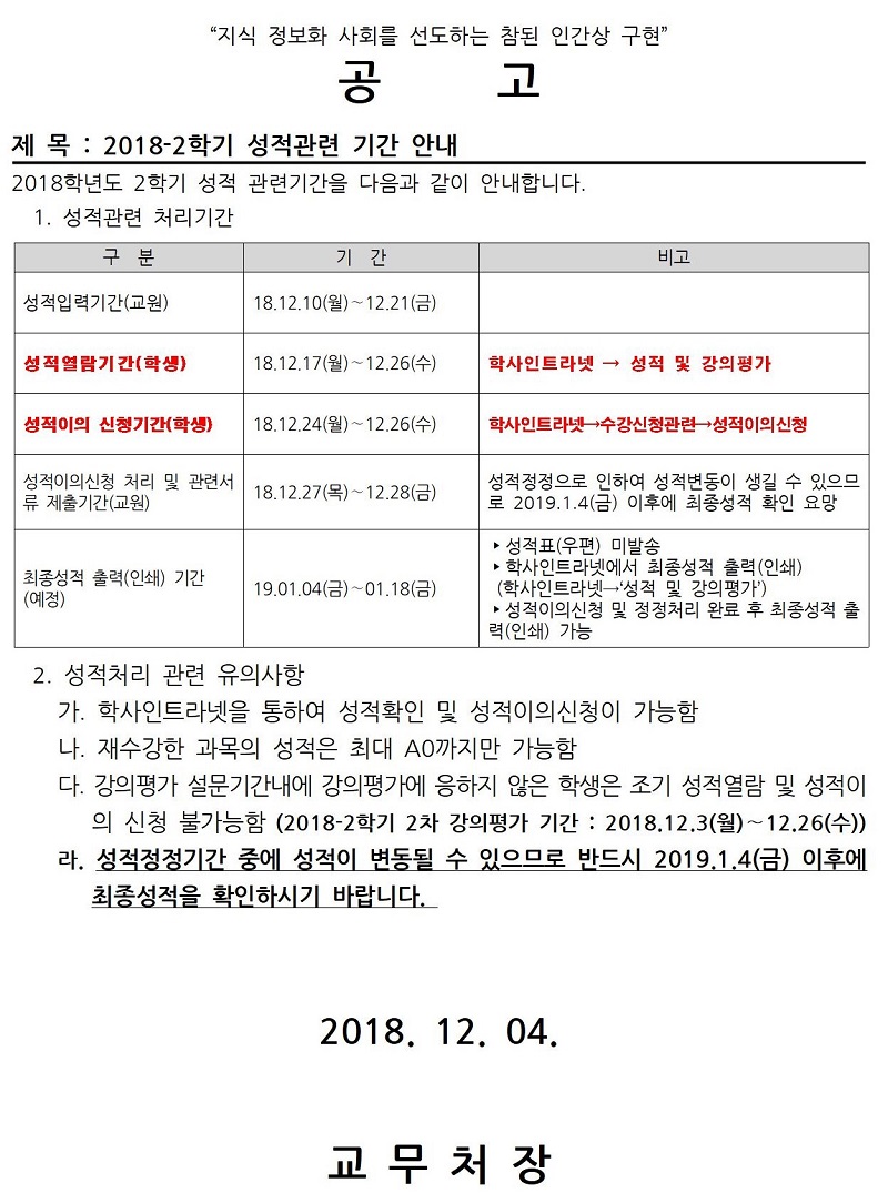 2018-2학기 성적관련 기간 안내001