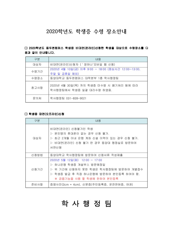 2020학년도 학생증 수령 장소안내_1