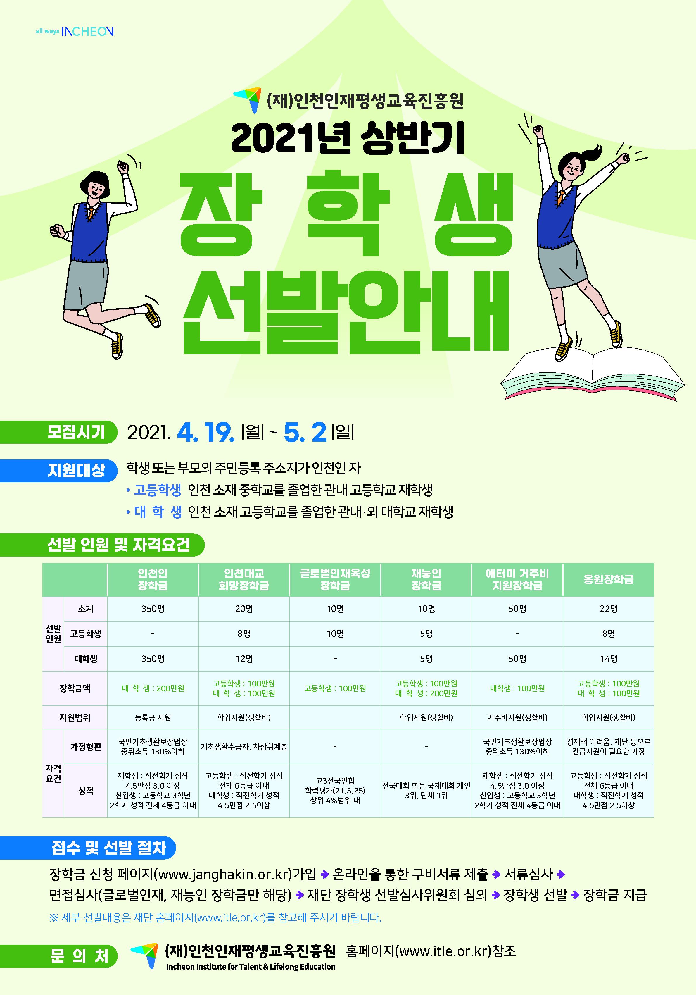 (재)인천인재평생교육진흥원 2021년 상반기 장학생 선발 안내