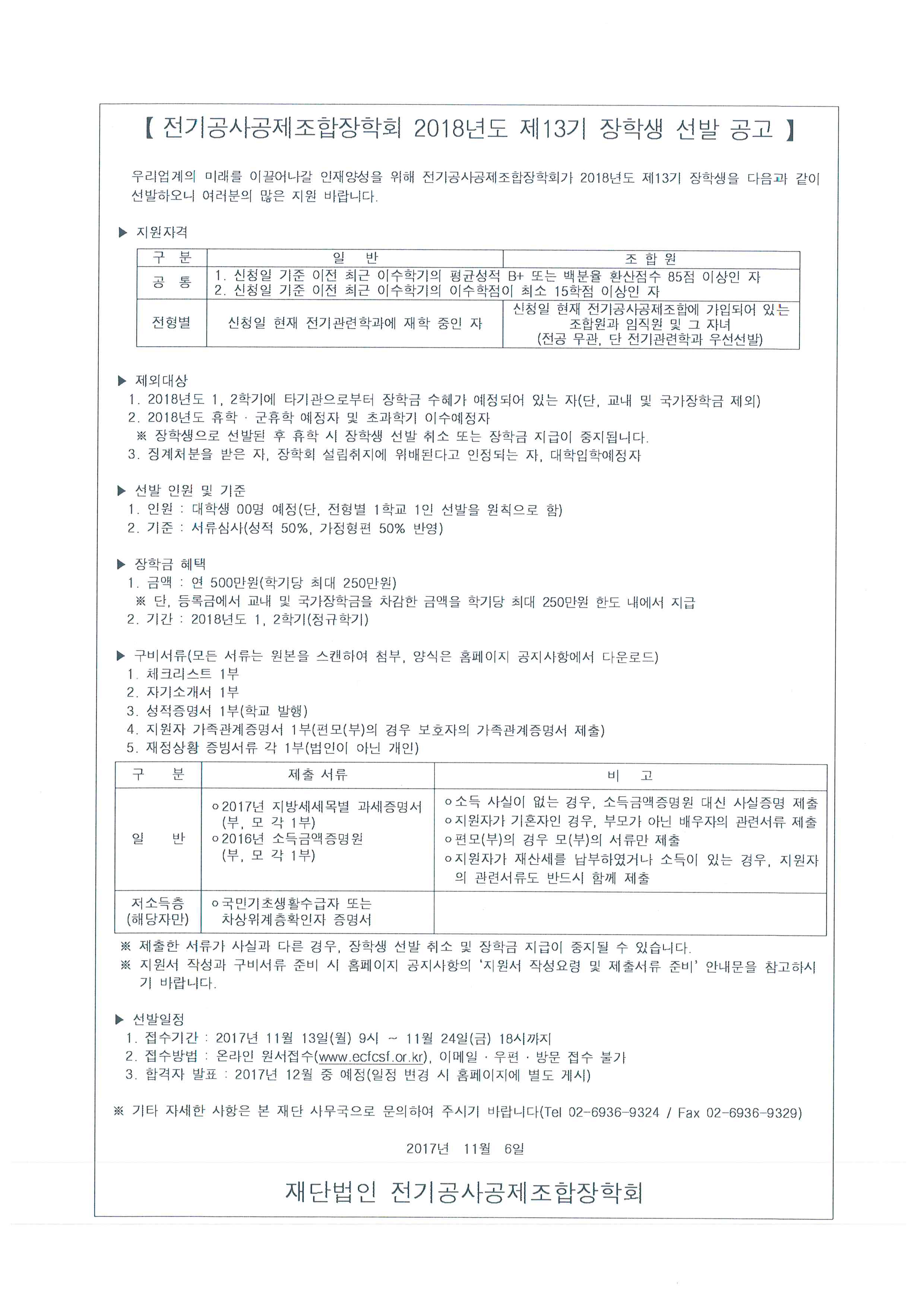 2018년도 제13기 장학생 선발 공고문