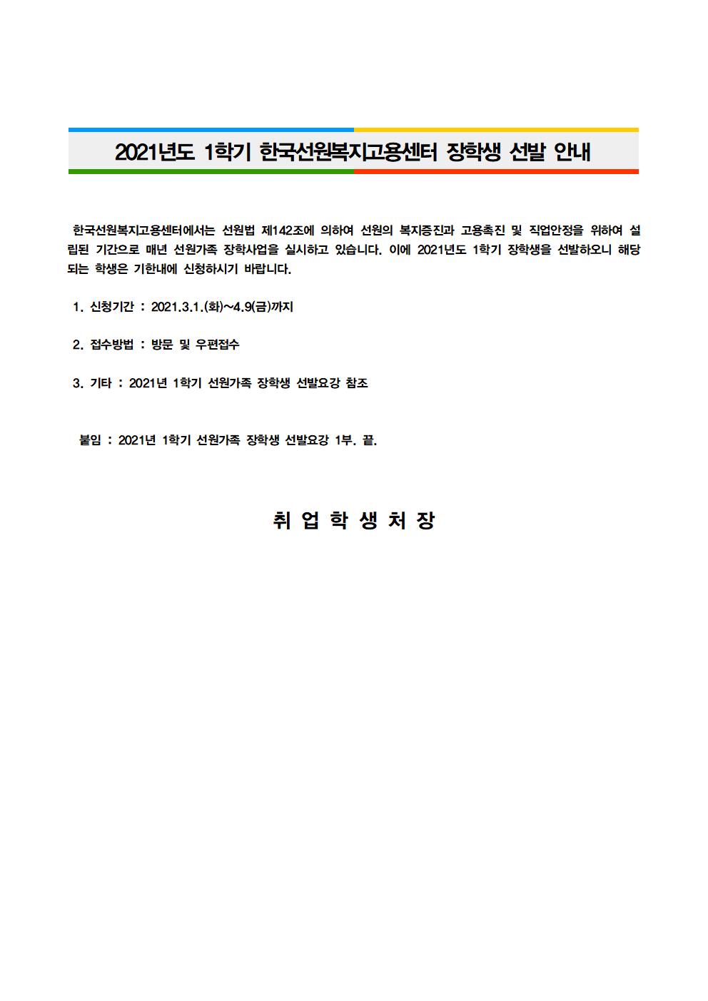 2021년도 1학기 한국선원복지고용센터 장학생 선발 안내